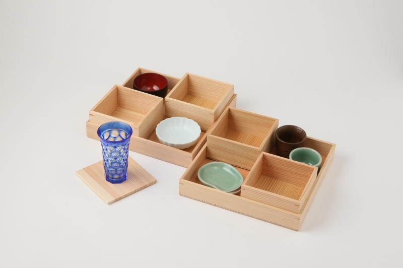 杉の香漂う器です。最小限の塗装しかしておりません。用途は限られますが清楚な香りをお楽しみ下さい。色々な組み合わせが可能です。松花堂用2組に、最高四段重ねのお重に、蓋はコースターとしてもお使いいただけます。食器用途以外にも小物入れとしても・・・